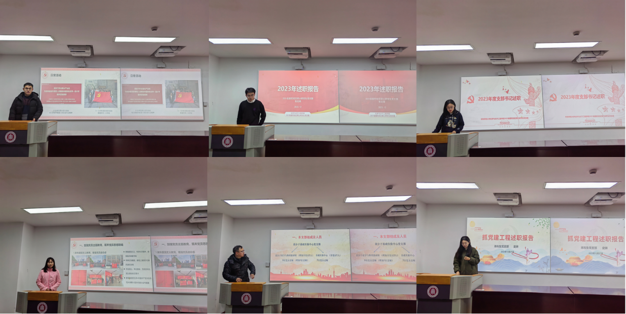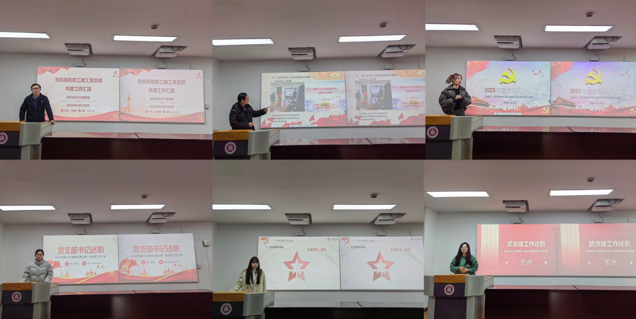 上海分子新药研究中心党支部宣传委员王梦雅、分析物化海水党支部书记马士禹、高分子实验中心党支部书记黄琨、无机有机职工党支部书记李德增、本科生党支部书记史琳,2021级普陀校区博士研究生党支部书记罗娟娟、2021级闵行校区博士研究生党支部书记朱韵、2022级普陀校区博士研究生党支部书记高志文、2022级闵行校区博士研究生党支部书记王诗迪、2021级普陀校区硕士研究生党支部书记张见闻、2021级闵行校区硕士研究生党支部书记王伟琛、2022级普陀校区硕士研究生党支部书记刘雅妮、2022级闵行校区硕士研究生第一党支部书记樊芝莹、2022级闵行校区硕士研究生第二党支部书记贺栖桐进行现场述职,十四位师生党支部书记围绕《老司机 党支部工作细则(试行)》要求,聚焦基层党支部“七个有力”建设标准,对2023年度支部书记履职情况进行了汇报,大家重点介绍了支部工作特色,查摆了存在的问题并在分析问题的基础上提出了后续工作目标和思路。