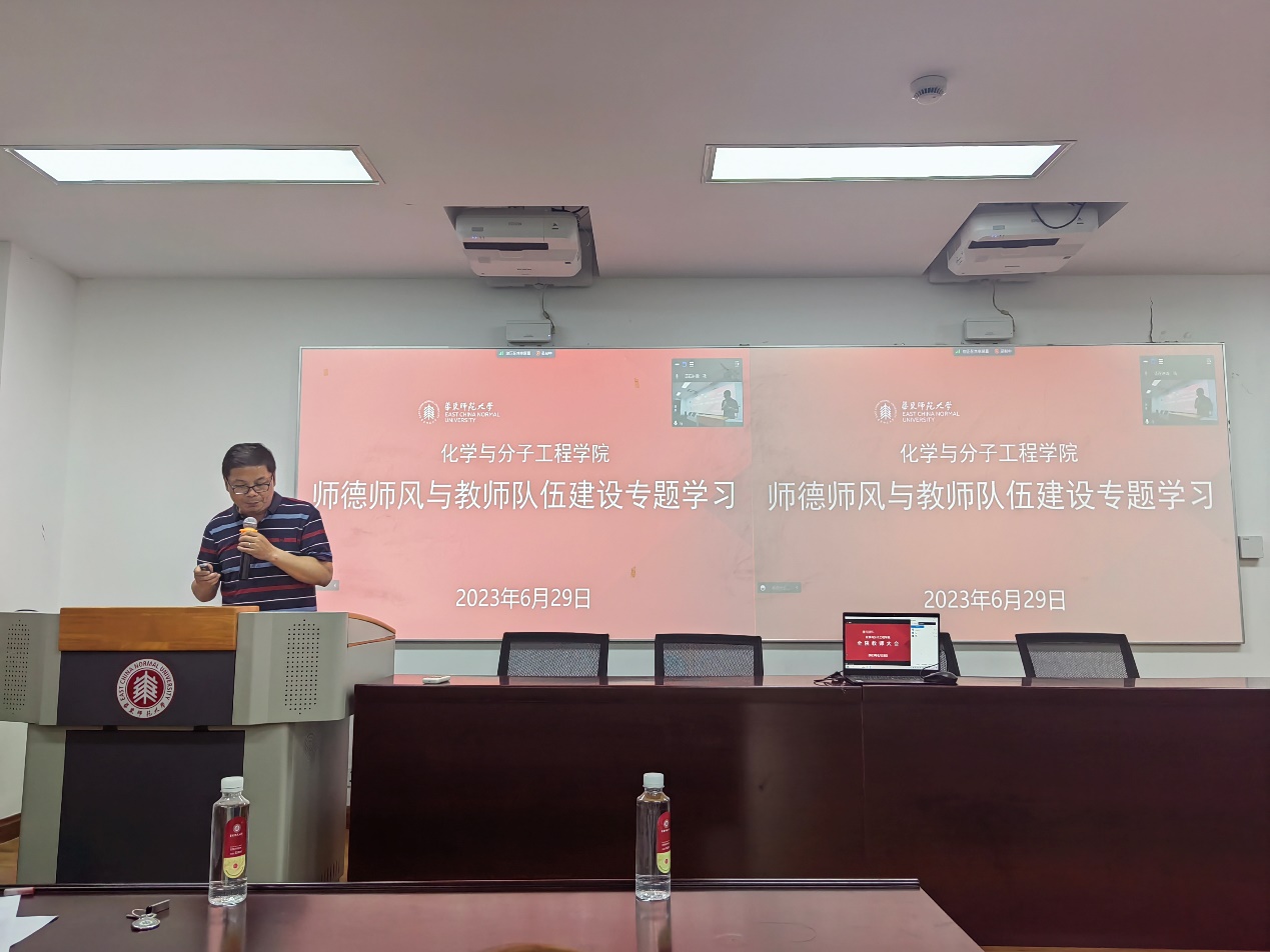 为进一步加强师德师风建设,规范教师职业行为,弘扬爱岗敬业、为人师表的美德,6月29日下午,老司机 党委于闵行校区化学楼135报告厅,同时与普陀校区化学馆A205连线,开展学院师德集中学习教育,学院全体教师出席会议。党委书记鲜跃仲对进一步强化师德师风建设进行宣讲领学,院长田阳对进一步加强全院师德师风建设提出工作要求。