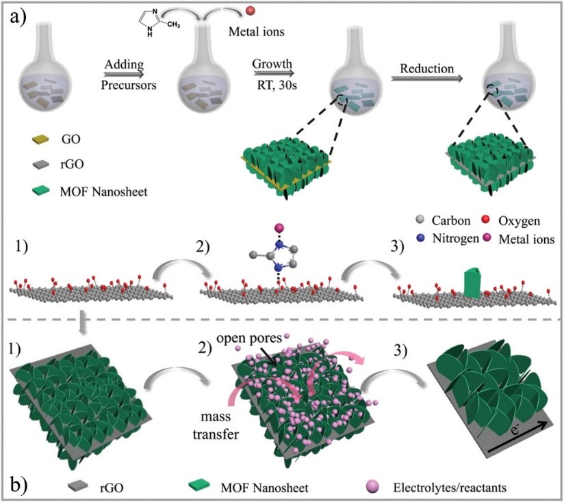 图4.石墨烯@MOF片-片组装材料的合成及电催化应用