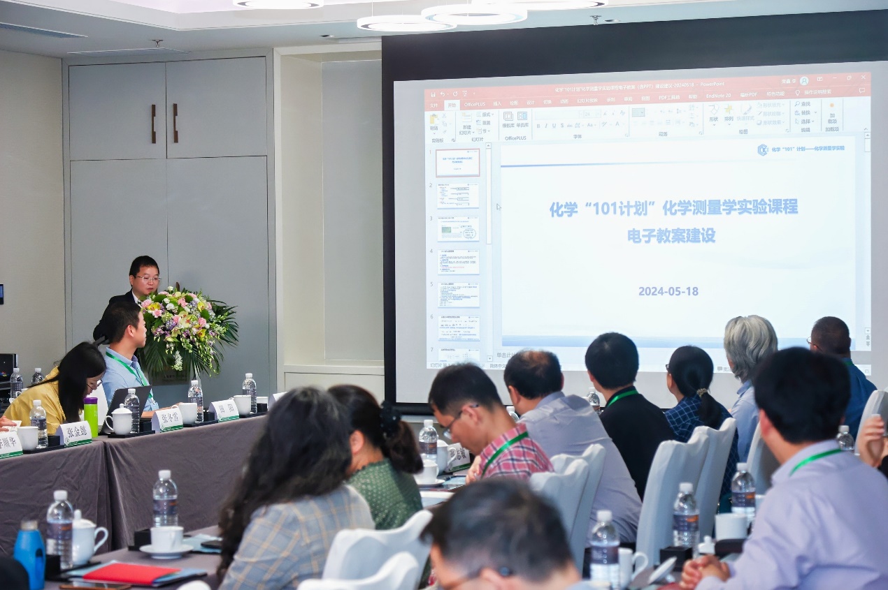 化学“101计划”化学测量学实验课程牵头专家、厦门大学化学化工学院院长任斌教授传达了4月19日化学“101计划”建设推进会的精神,重点强调了课程建设的进展和时间节点要求。任老师明确指出,各领域需在11月底前提交教材样书及相关工作报告,三大重点任务包括白皮书、精品教材样书以及知识图谱和能力图谱。