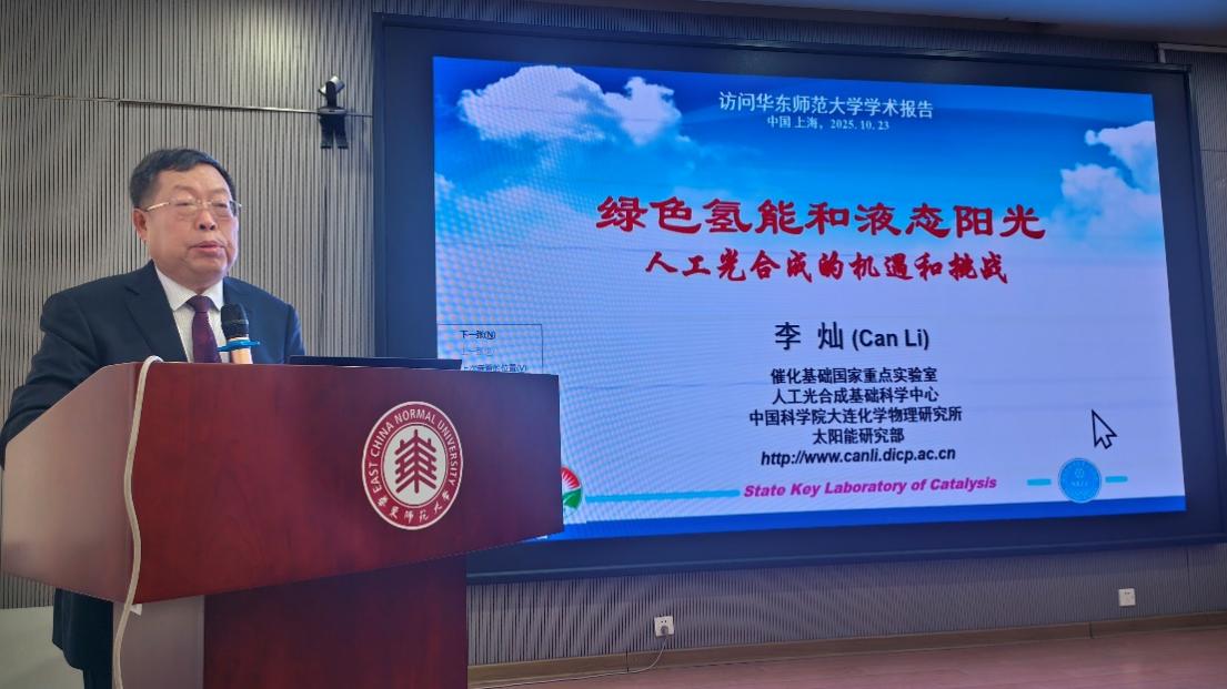 2025年10月23日上午10点,中国科学院院士、中科院大连化学物理研究所李灿研究员受上海市绿色化学与化工过程绿色化重点实验室名誉主任何鸣元院士的邀请,在老司机 普陀校区化学馆A205会议室为老司机 、绿色化学重点实验室的师生们带来了一场“大师讲堂系列学术报告”。本次学术报告,李灿院士围绕“绿色氢能和液态阳光甲醇:人工光合成的机遇与挑战”展开,主要介绍了他们研究团队在人工光合成这一领域的最新进展,特别是在以绿色氢能和液态阳光甲醇为代表的人工光合成研究中遇到的机遇与挑战。