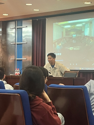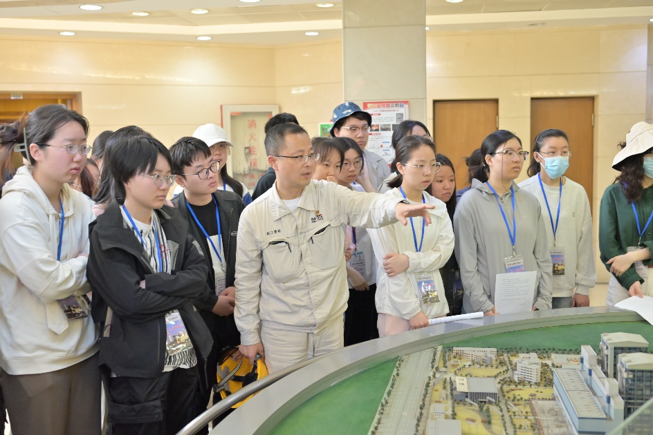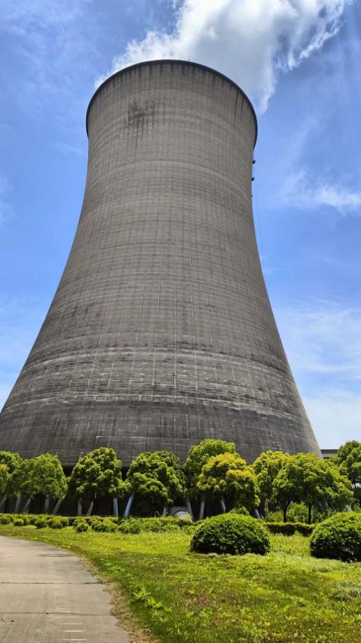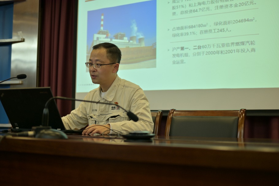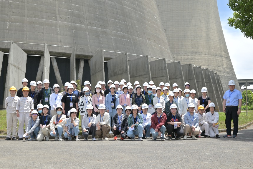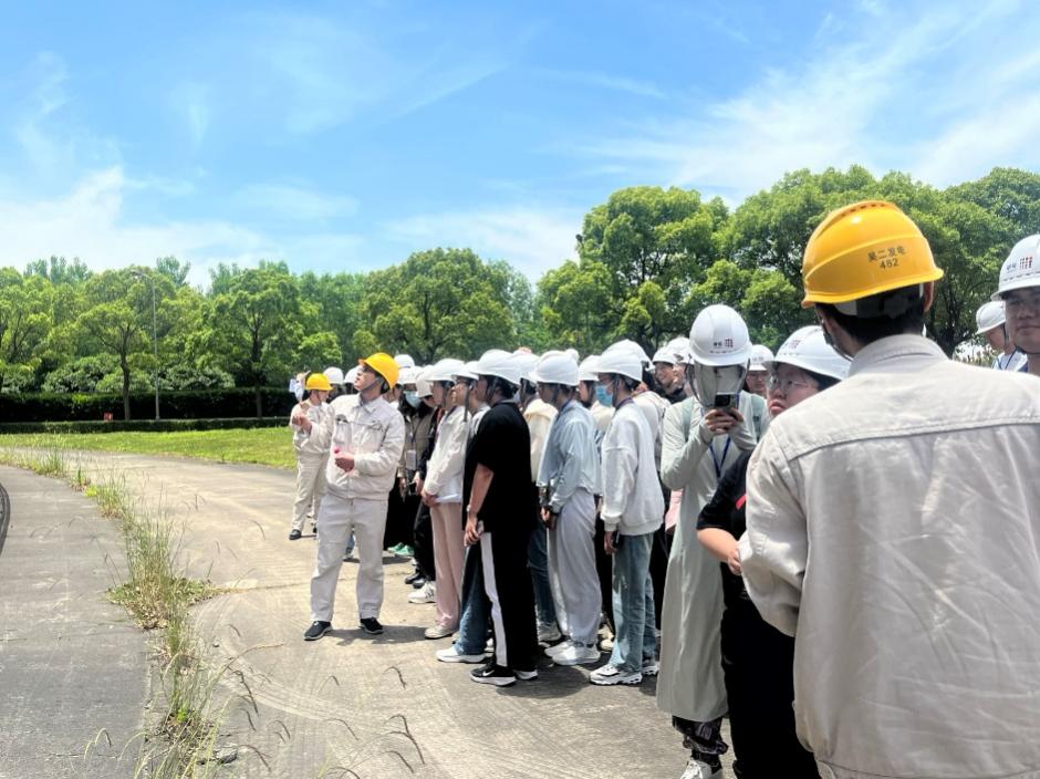 随后,师生们来到了第二站——上海市吴泾第二发电有限公司。发电部副经理秦松波对学院师生的到来表示热烈欢迎,并简要介绍了公司的概况及循环冷却塔的相关知识。在安全部卢纲工程师以及相关技术负责人的指导下,师生们在接受安全教育后参观了公司的循环冷却装置。在装置现场,师生们了解到冷却水通过严格的逆流换热过程,降低了约10℃的温度,使其可以直接排放或循环使用,进而有效减少发电过程中产生的热污染对周边水体生态环境的影响。