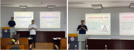 首先,闵行消防救援支队的张磊警官为师生们进行高校实验室消防培训。张警官结合校园案例对到场师生进行校园消防安全知识宣传,介绍了在做实验之前必须知道的一些事情、如何做到预防为主、做实验的态度、实验室安全涉及的方方面面等潜在的风险,重点讲述了实验室意外发生火灾的对策。