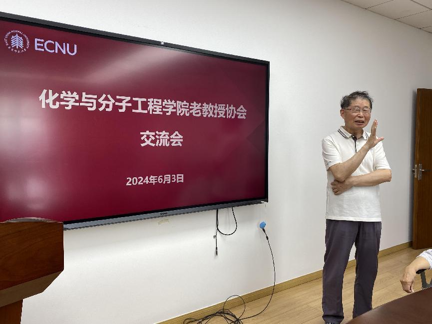 校老教授协会会长杜公卓老师表示见到化学院的老教授们特别亲切,历数学院多位老教授在职时兢兢业业的工作状态。杜老师还通报了上海市和学校老教授协会的工作近况,表示会继续为老教授们服务,希望老教授们保持身体健康,期待能常常见到大家。