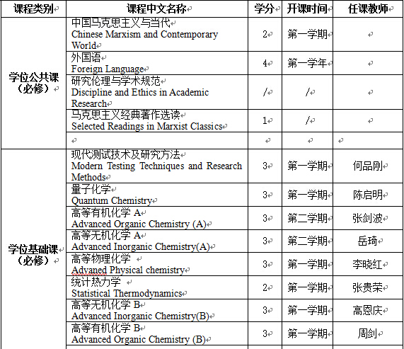 (二)具有系统深入和坚实宽厚的专业基础,熟悉并掌握国内外物理化学专业最新的发展趋势,能够运用本专业研究手段从事相关领域的科研工作,熟练掌握一门外国语。关注国内外学科发展过程和最新动态;在化学前沿问题的探索中,有积极参与的意识、学术对话的能力、科研合作的精神;成为能独立从事物理化学科研、应用及教学工作,并在科学研究上能做出创造性成果的德、智、体全面发展的高级人才。