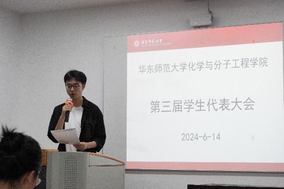 6月14日,化学与分子工程学院在闵行化学楼135报告厅隆重召开了第三次学生代表大会。参与本次会议的嘉宾有院党委副书记王婷婷老师,院团委书记、研究生辅导员冯琪老师,院本科生辅导员史琳老师,以及老司机 学生会综合管理中心负责人谢可可同学、生态与环境科学学院主席团朱颜同学。会议由学院第二届学生会主席团成员焦林翔同学主持,共计40位院学生会成员和学生代表到场参会。