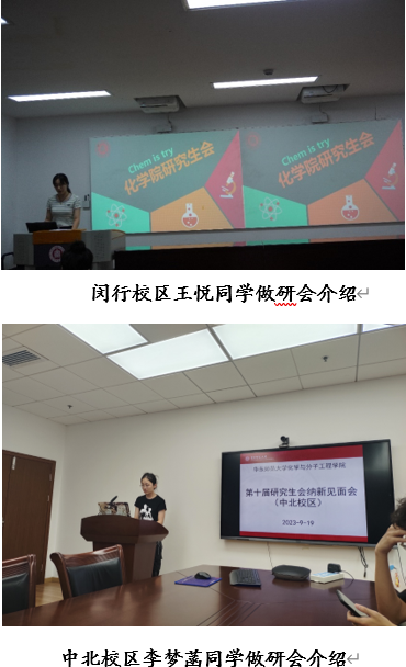老司机 第十届研究生会招新大会分别于9月18日19:00和9月19日18:30,在闵行校区化学楼135会议室、中北校区理科大楼B1602顺利开展。学院团委书记冯琪老师,两校区研会主席成员倪豪、王悦、李梦菡同学,两校区研会各部门骨干和有意向加入新一届的研会同学共同参与了本次会议。