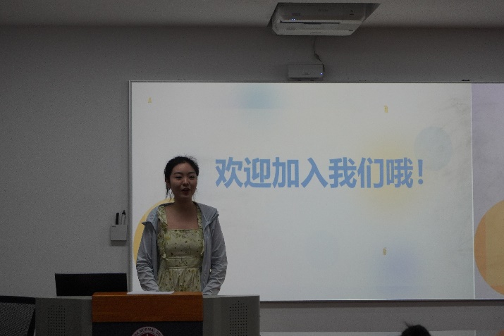 会议开始后,两校区主席团成员王悦、李梦菡首先对同学们的到来表达了热烈的欢迎,并向大家介绍了研会的基本概况、部门概况与特色活动。院团委书记冯老师对即将加入研会大家庭的成员们寄语,希望大家可以一起进步、共同成长,在这里收获能力、提升自我。
