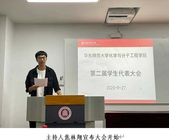 9月27日,化学院于闵行化学楼135会议室隆重召开了第二届学生代表大会。参与本次会议的嘉宾有学院团委书记、研究生辅导员冯琪老师,本科生辅导员史琳老师,以及生态与环境科学学院主席团代表、执行主席陈明煊同学,生命科学学院主席团代表刘菁扬同学。会议由学院第一届学生会主席焦林翔同学主持开展,共44位学生代表和学生会成员到场参会。