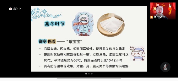 佳艳老师从南北方地域差异出发,引出今天探究的第一个取暖产品——暖宝宝。基于铁粉的氧化放热、活性炭的吸附导热、蛭石的膨胀散热和氯化钠的催化促进作用,使得这一张薄如纸、轻如棉的暖宝宝贴拥有了自动发热、续温持久的神奇效果。