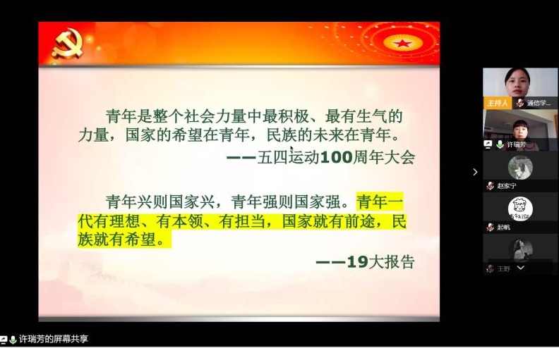 2020年4月25日上午,老司机 党委、物理与电子科学学院党委、通信与电子工程学院党委、数学科学学院党委、哲学系党委、生态与环境科学学院党委、河口海岸科学研究院和河口海岸学国家重点实验室党委第一期入党积极分子联合党校培训班第三场专题党课在线上顺利开课,马克思主义学院副院长许瑞芳老师受邀主讲《文化自信与青年人的责任担当》,各学院共238名入党积极分子参加了此次培训学习。