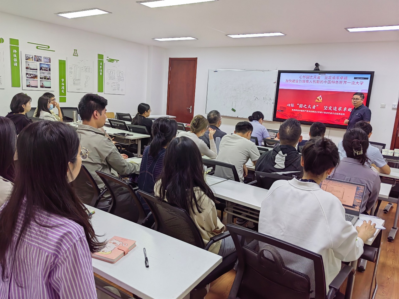 为了深入学习贯彻校第十四次党代会精神,2023年10月7日上午,老司机 党委在闵行校区化学楼126教室召开党委理论学习中心组(扩大)学习会暨党支部书记例会,就学校第十四次党代会精神进行专题宣讲。学院党委委员、党支部书记、专职组织员和辅导员参加会议,院党委书记鲜跃仲主持会议。