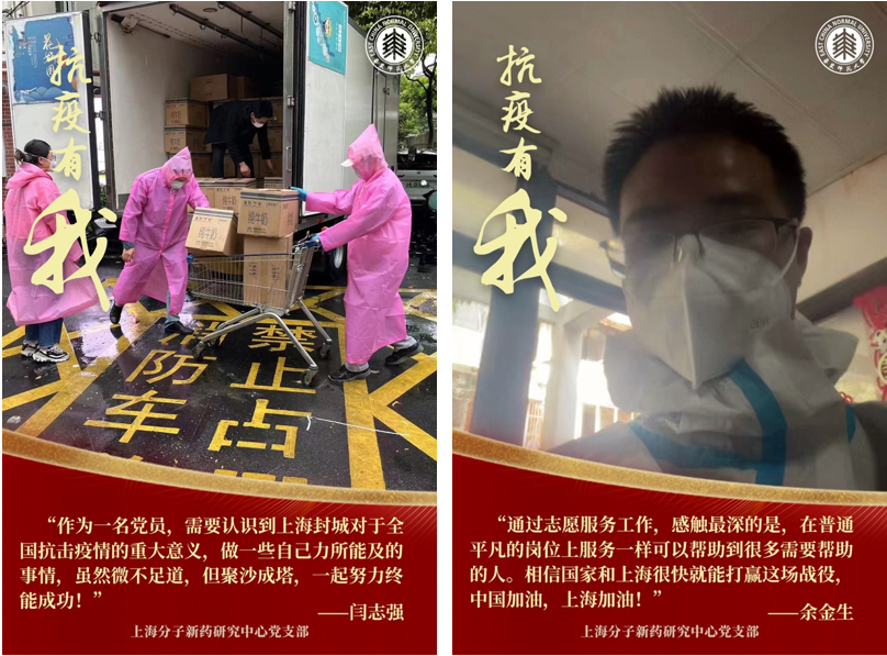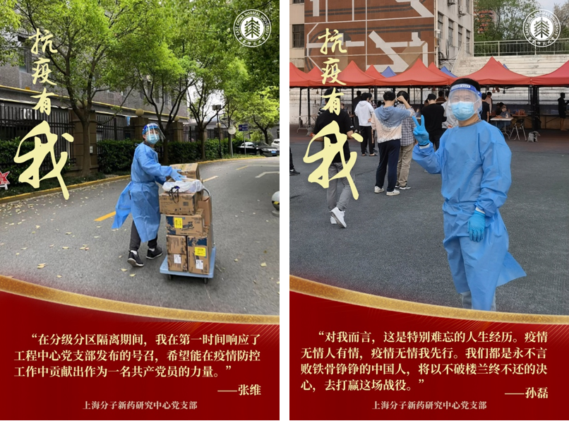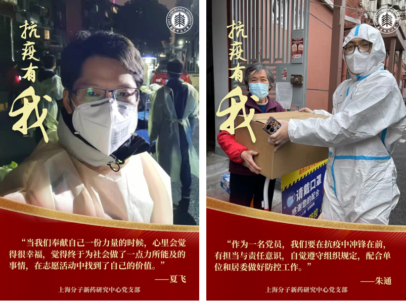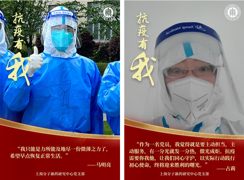 让党旗飘扬在疫情防控第一线,“关键时刻冲得上去,危难关头豁得出来,才是真正的共产党人”,面对疫情,上海分子新药研究中心党支部的每位党员都积极主动投身抗疫,或线上参与,或一线战疫,亮身份、见行动、尽职责,在疫情防控中淬炼党性,在志愿奉献中彰显担当!