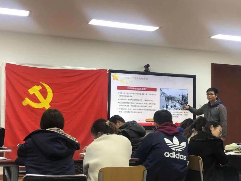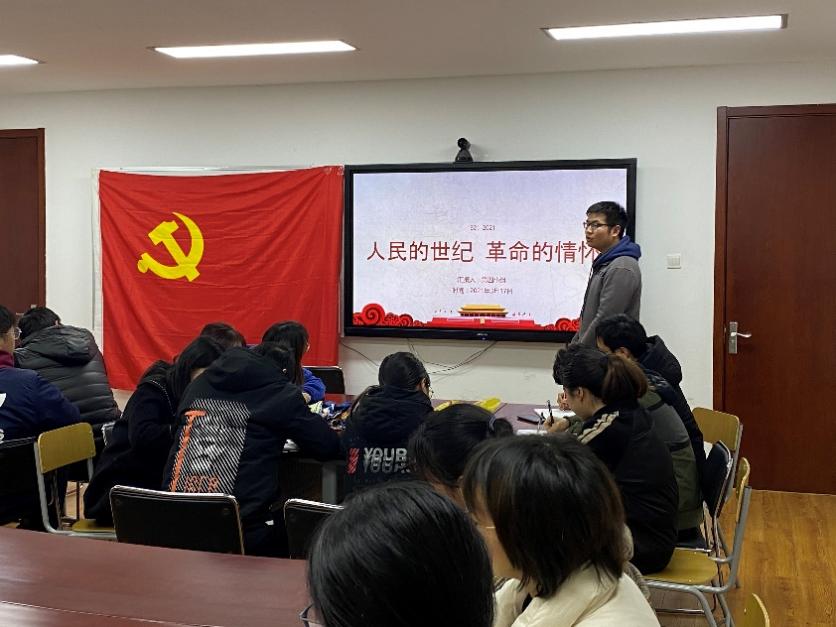 他首先介绍了中国共产党百年来的光辉历史。1921年7月1日,中国共产党在上海诞生。这是开天辟地的大事变,自此中国革命的面貌焕然一新。他从中国共产党成立的标志---中共一大到遵义会议召开、长征的胜利、抗日战争的胜利、解放战争胜利,再由新中国成立到社会主义建设初期、脱贫攻坚全面建设小康社会,展开介绍了中国共产党的光辉历史。历史事实证明,没有共产党就没有新中国,只有社会主义才能救中国,只有改革开放才能发展中国,发展社会主义,发展马克思主义,只有中国共产党才是中国特色社会主义事业的坚强领导核心。历经百年雨雪风霜,今日之中国大踏步迈进2021年的时间门槛,眼前的情景是令世界为之瞩目的辉煌。紧接着,他强调了中国共产党发展初期的种种艰难到如今取得的重大成果,足以证明我党强大的生命力和实力,作为青年共产党员,更要学习与继承党史中成功的经验和宝贵的精神。最后王玉柱带领党员同志们重温入党誓词,重温身为一名共产党员的荣耀与责任。