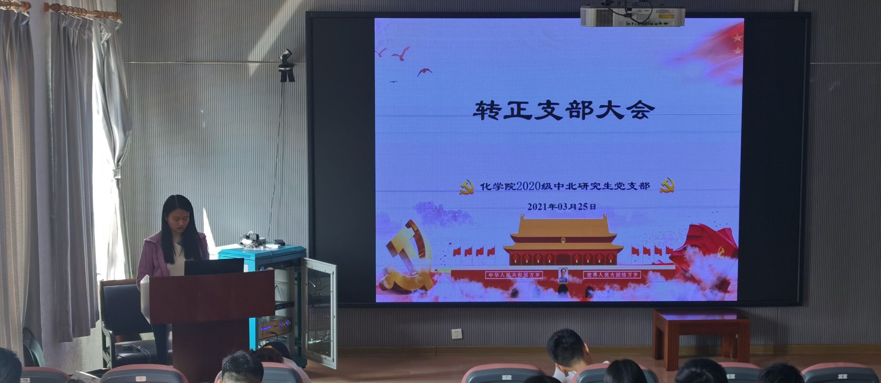 为学习贯彻党中央和上级党组织下达的关于严格接收预备党员转为正式党员的指示,进一步创新和丰富民主党日活动的形式和内容,丰富党组织队伍,提高党组织的凝聚力和党员的表达实践能力。3月25日上午九点半,老司机 2020级中北研究生党支部组织学生党员开展组织生活会及预备党员转正会议,活动在化学馆A205会议室进行。研究生党支部书记杨嘉豪同志宣布本次预备党员转正会议正式开始,并委托组织委员谢宜君同志主持本次会议,2020级中北研究生党支部学生党员参加本次党日活动。