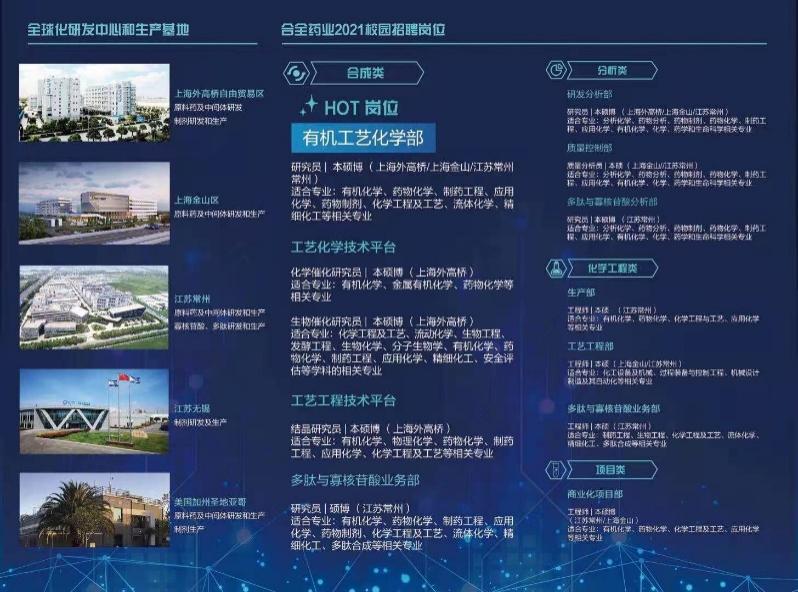 上海合全药业有限公司系上海药明康德新药开发有限公司全资控股子公司,成立于2003年1月,位于上海金山。合全药业是在中美两地均有运营的药明康德子公司,服务于生命科学行业,拥有卓越的化学创新药研发和生产的能力和技术平台。作为全球新药合作研究开发生产领域(CDMO)的领军企业,合全药业致力于为全球合作伙伴提供从原料药(API)到制剂,高效、灵活、高质量的一站式解决方案。通过人事老师的展示和讲解,同学们对该公司有了更为全面的了解和认识。