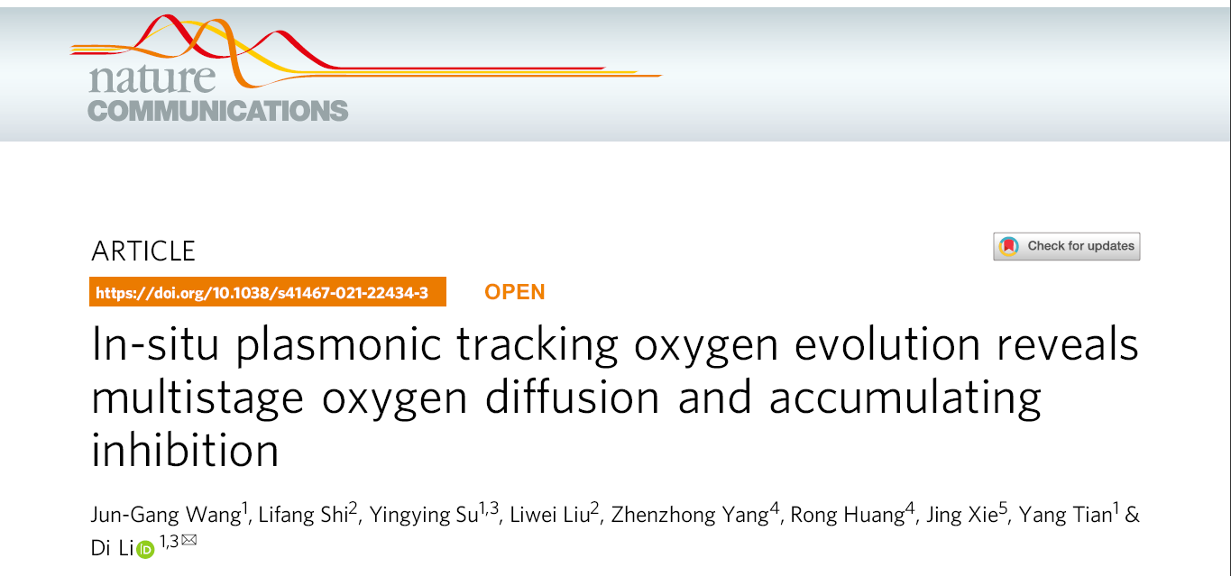 老司机 李迪课题组在多相反应界面电化学析气反应原位监测方面取得重要进展。该成果以“In-Situ Plasmonic Tracking Oxygen Evolution Reveals Multistage Oxygen Diffusion and Accumulating Inhibition”为题于2021年4月12日发表于Nature Communications (Nature Commun. 2021, 2164)。
