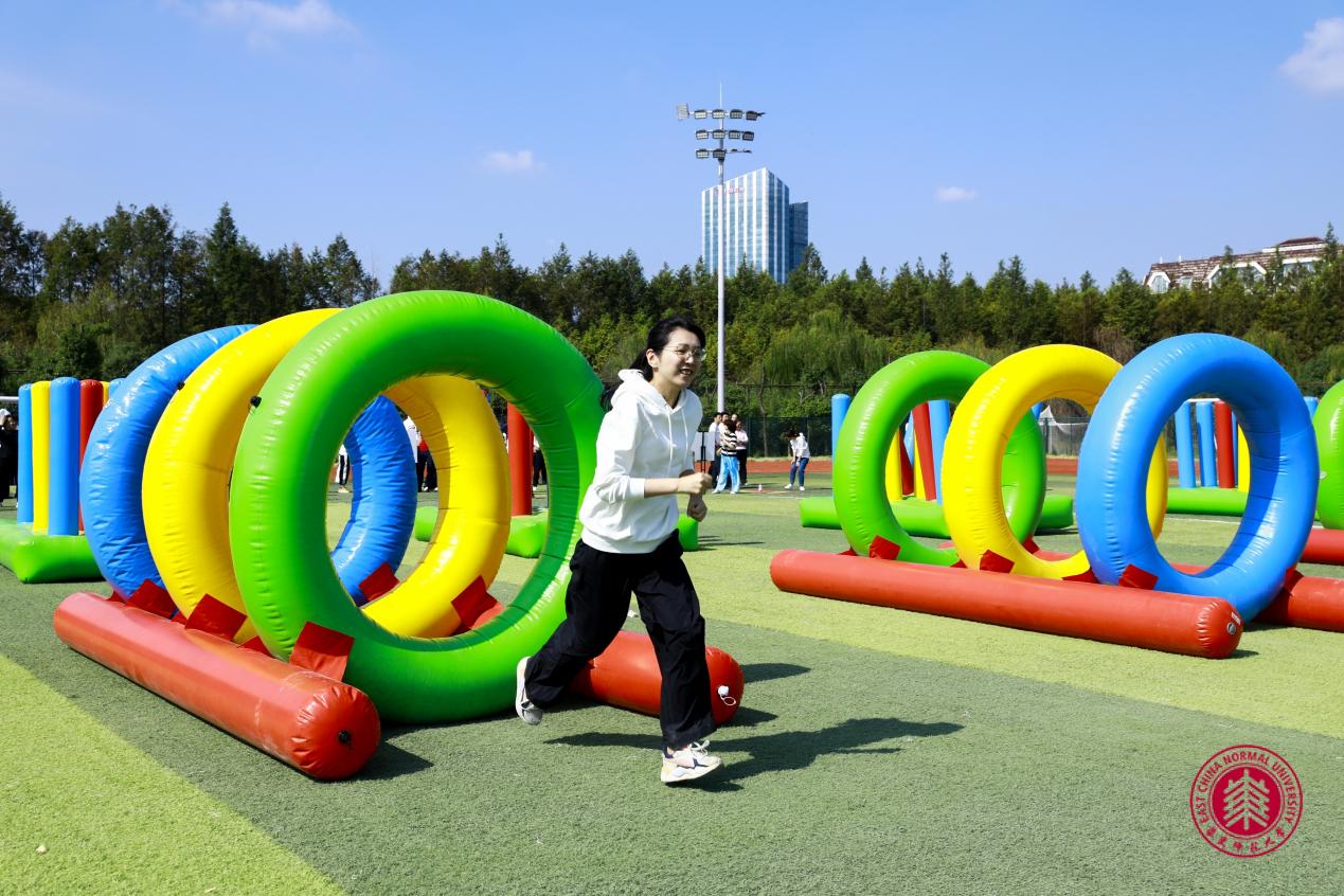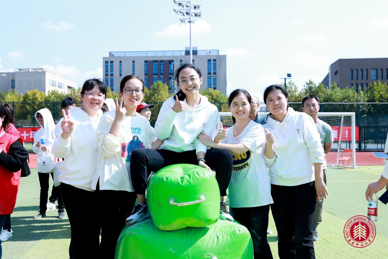 在闵行校区西操场上,别开生面的教职工运动会也在如火如荼地进行着。在上午的开幕式上,化学院的教职工们全力以赴,获得了广播操比赛的优秀表演奖,随后,又以卓越的团队协作能力和应变能力,通过重重考验,赢得了障碍闯关赛一等奖和人桥接力赛三等奖!
