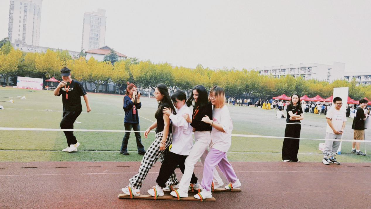 人桥接力赛是教职工运动会的压轴项目,化学院老师们团结一心,紧密配合,快速有序地向前移动搭桥板,让队友顺利行进,展现出团队协作的力量。