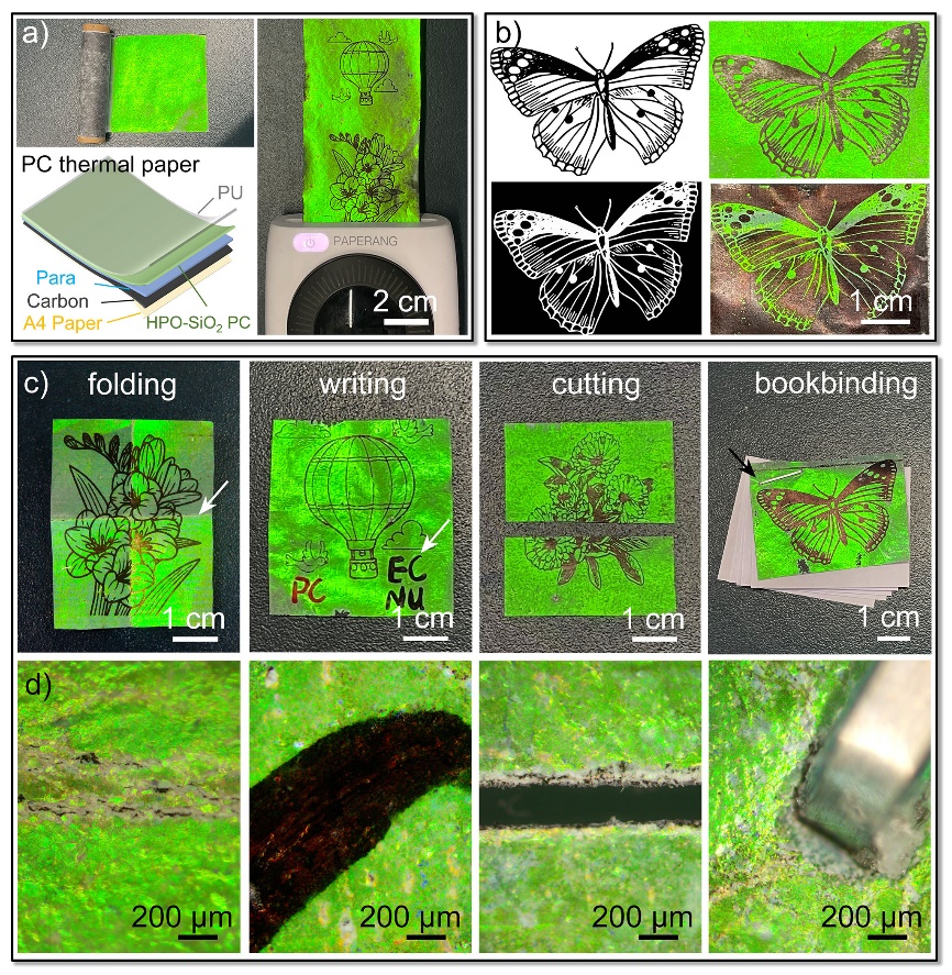 图3.可折叠、书写、剪裁和装订的光子晶体热敏纸