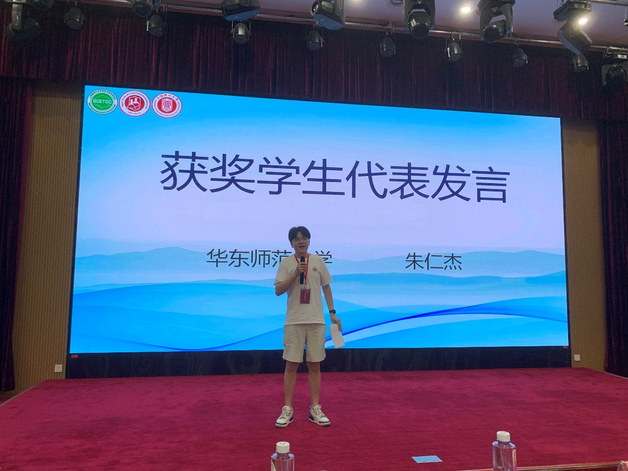 朱仁杰作为获奖学生代表,在闭幕式及颁奖典礼上发言