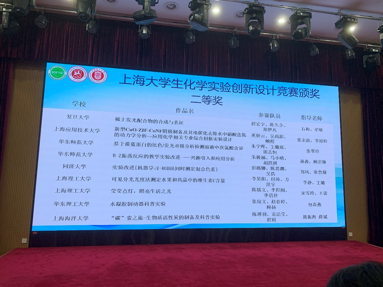 在同期举行的上海大学生化学实验创新设计竞赛中,经过校赛选拔的三支队伍作品质量优良,在经历初赛评审后也全部进入决赛,经过线上答辩,最终参加科普赛道的作品获得了一等奖,新创实验赛道和已有实验改进创新赛道作品荣获二等奖。至此,我校本次参赛的个人和队伍全部获奖!