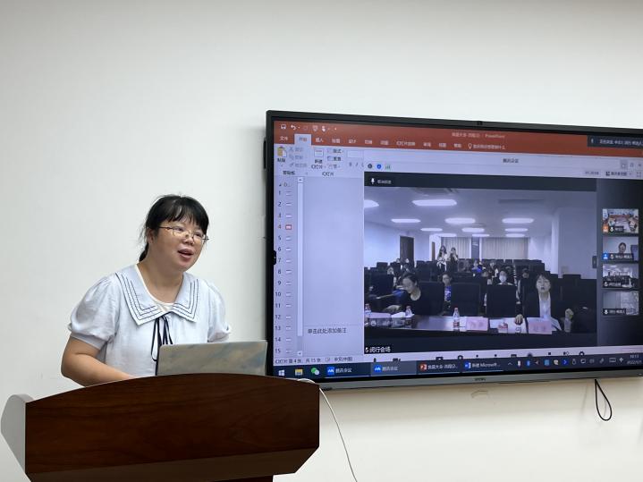 第八届研究生会执行主席赵捷向全体成员总结了过去一年的工作情况。她首先介绍了第八届研会的组织架构调整,概述了这一年研会举办的涵盖“文-娱-团-学-就业”等方面的37场活动,特别介绍了“化音电台”“化影”“化聚生活”等系列主题活动,并指出学院研会在本年度对校会工作的支持与配合、与兄弟院系的积极合作。赵捷说到,第八届化院研会充分把握了本院同学的需求,有针对性地对各部门进行了调整和完善,为化院师生提供了更好的服务,此外,也考虑了本院分校区教学的实际情况,增强了线上宣传平台建设。对于下一届研会的期许,赵捷则希望能继续与兄弟院系求合作、促创新,积极开展更多让同学们喜闻乐见的活动。