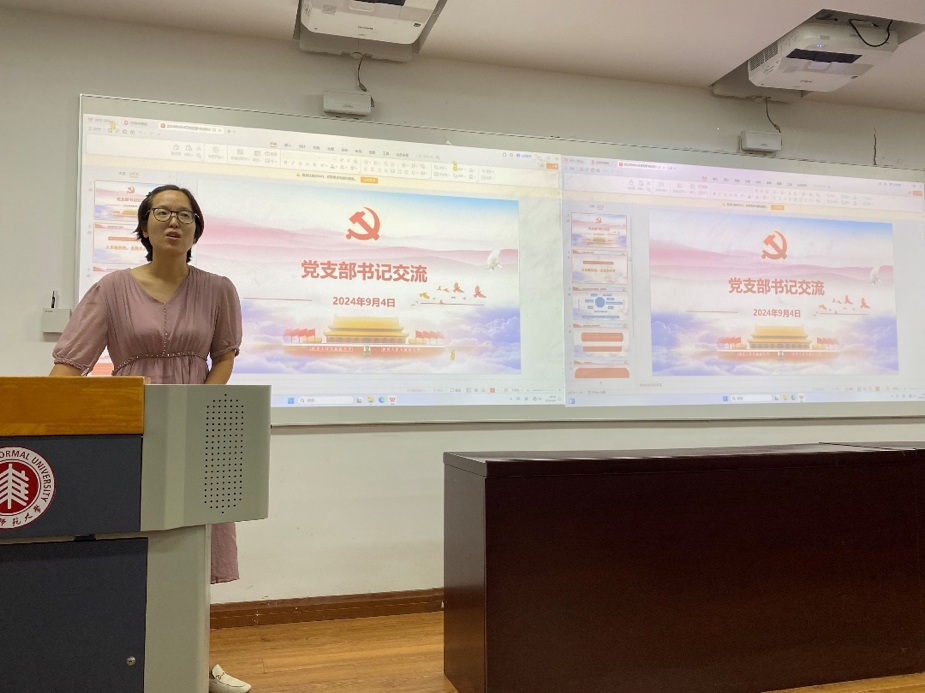 随后,学院专职组织员曹美萍向与会师生梳理了支部党建工作注意事项及本学期支部需加强的重点工作,谈到支部书记的领头雁作用,希望和支部书记一道,在学院接下来的党建工作中,提前组织策划,合理安排,做好党员的教育、管理及服务工作,协助学院党委做好迎接巡查、党委换届等一系列工作。