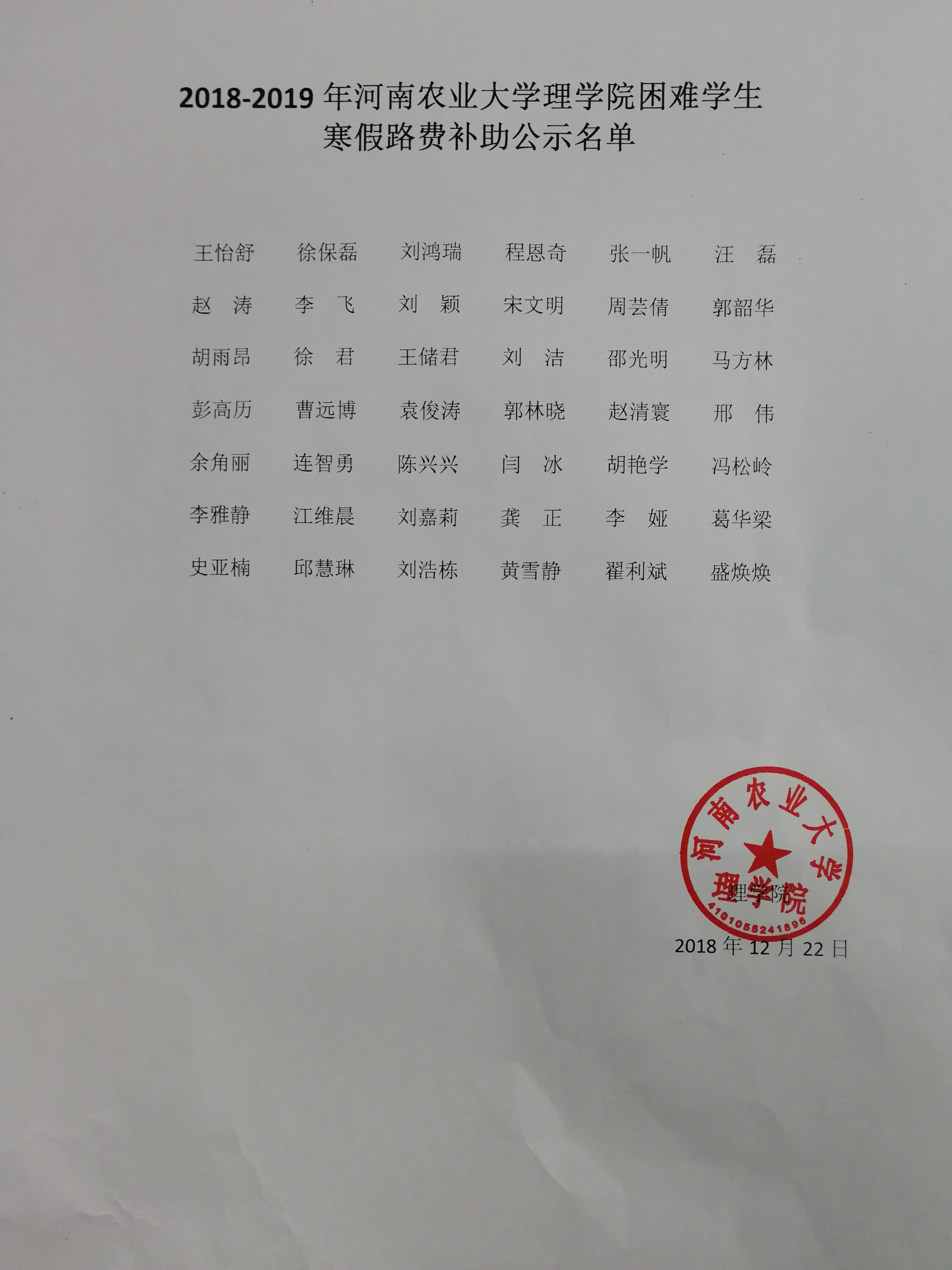 2018-2019年老司机 困难学生寒假路费补助公示名单
