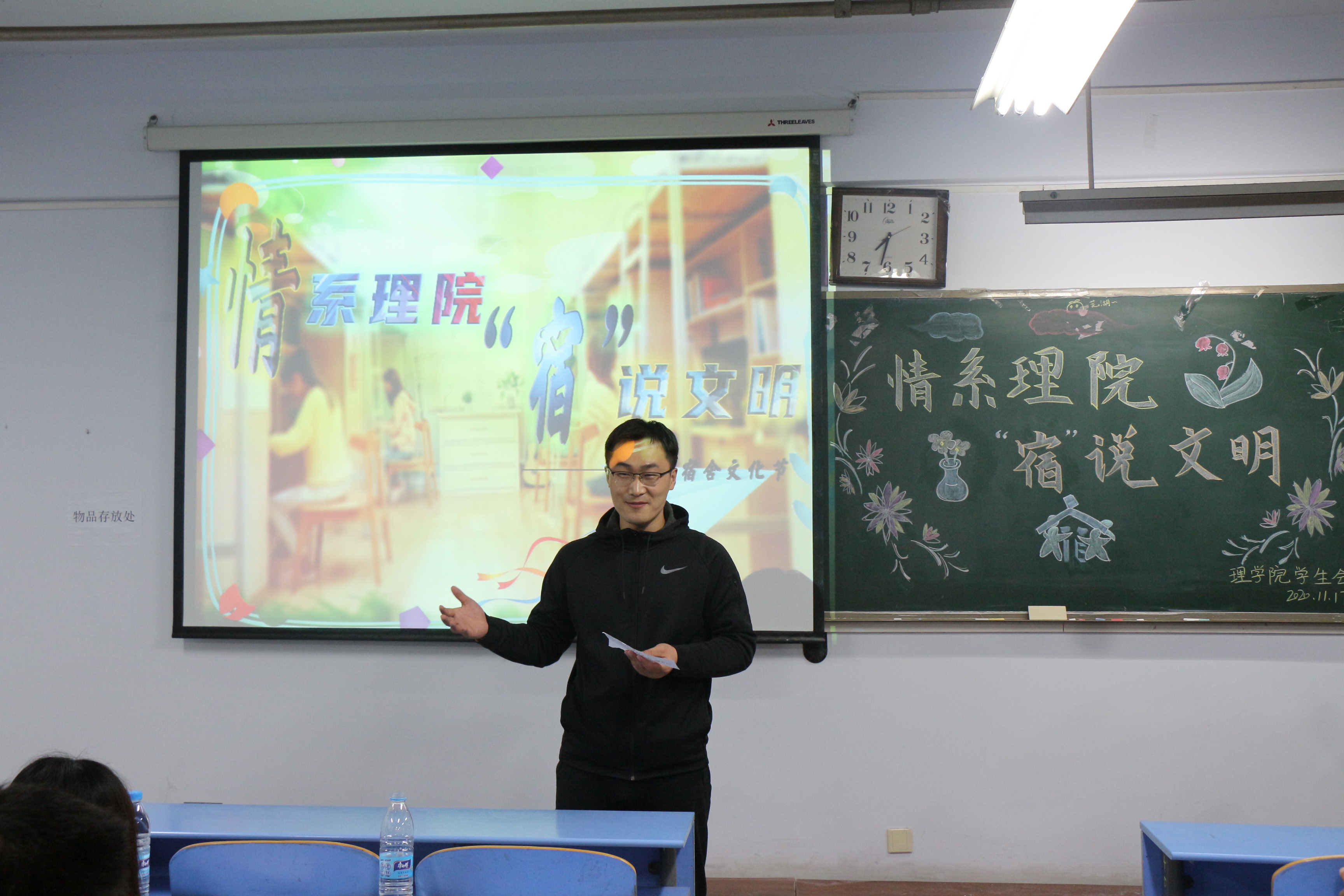 本次宿舍文化节活动分为宿舍装扮、线上评选和线下决赛三部分。经过老司机 官方微信线上投票,共有九个寝室闯进决赛。参赛宿舍代表,以PPT的方式向现场观众介绍自己精心装扮的“小窝”,通过一张张优美的照片、精彩的演讲,向观众展现了不同主题和风格且温馨的小窝,让观众看到了宿舍成员之间的情谊和对美好生活的向往之情。比赛中间穿插演唱、相声等表演,将现场氛围推向高潮。经过激烈的角逐,来自桃李园2号楼的723寝室荣获此次宿舍文化节冠军。徐向楠为获奖寝室颁奖并合影留念。