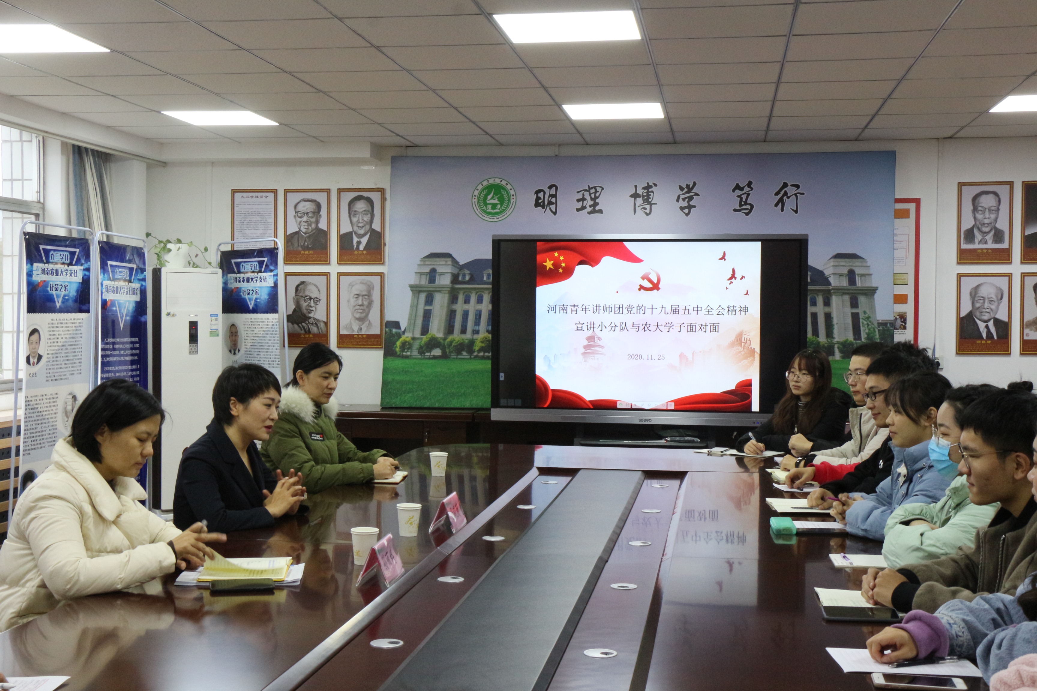 会上,张晓静结合事例以明白、易懂的语言将十九届五中全会与大学生学习生活联系在一起,介绍了升学、就业、社会保障等方面内容,让同学们对党的十九届五中全会精神有了更深入的了解。并针对大家在学习十九届五中全会精神和自身成长发展过程中遇到的问题与同学们展开面对面的互动交流。
