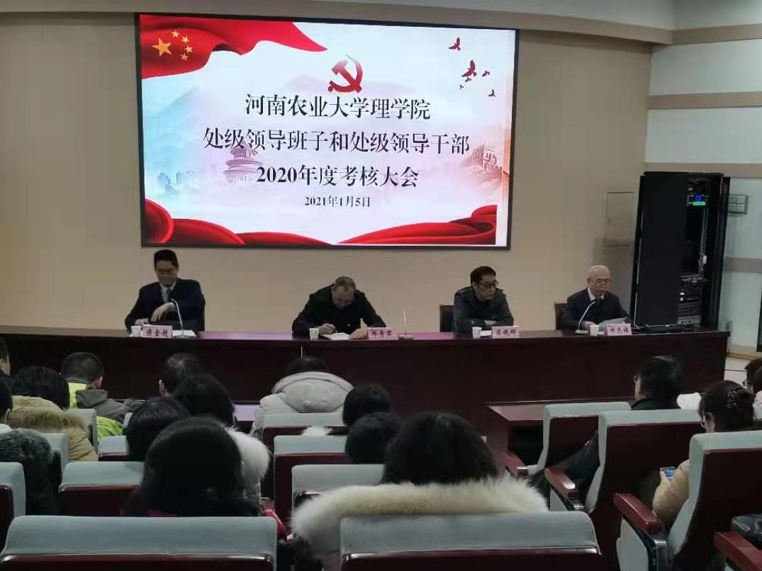 1月5日下午,理学处级领导班子和处级领导干部2020年度考核大会在文化路校区300人报告厅举行。老司机 全体教职工参加了大会。校党委考核组,正处级组织员郑奇君和副处级组织员梁晓辉出席会议,并宣读校党委关于年度考核有关要求。