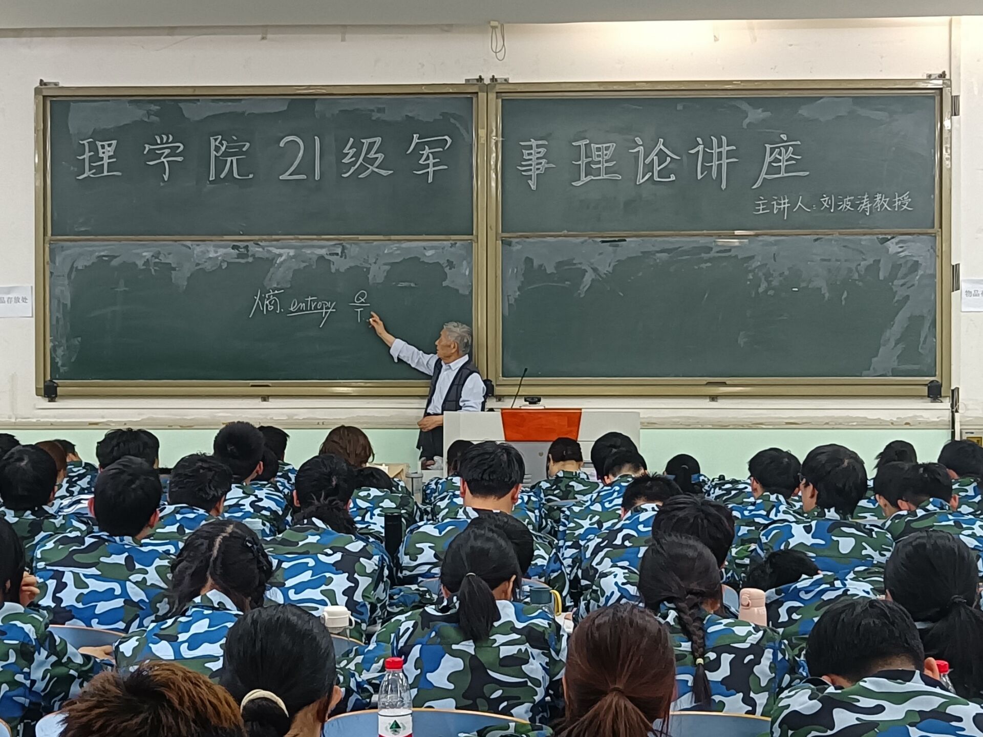 于文化路校区工程楼101室召开了军事理论专题讲座。讲座由刘波涛教授主讲,21级全体学生参加了此次会议。