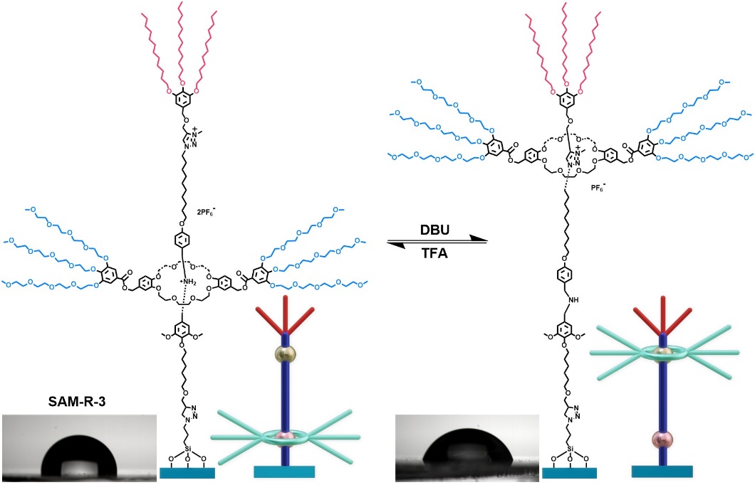 论文链接:Surface controllable wettability using amphiphilic rotaxane molecular shuttles.