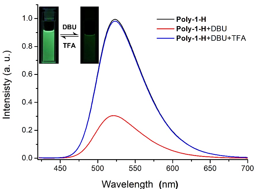 图6 拓扑聚合物溶液在酸碱刺激下的荧光可视变化