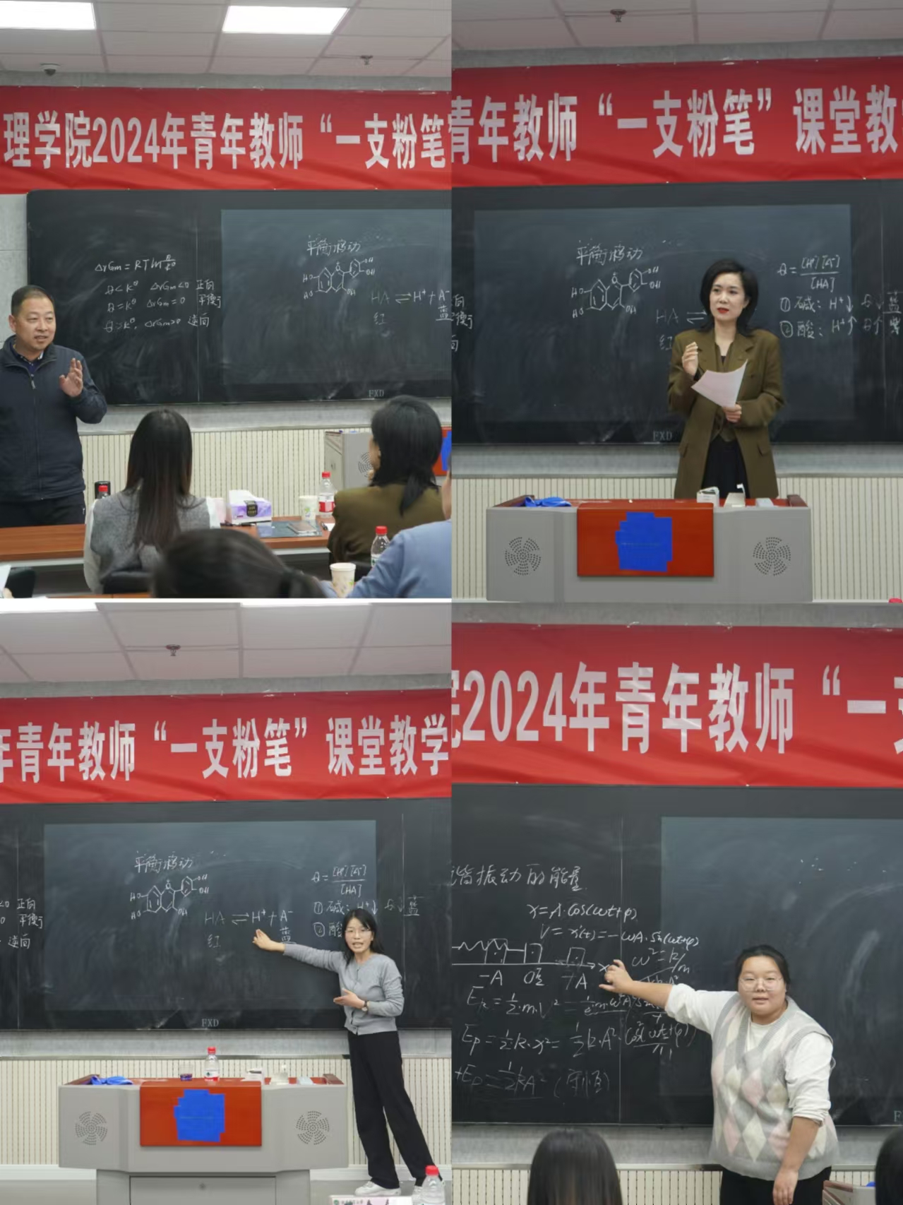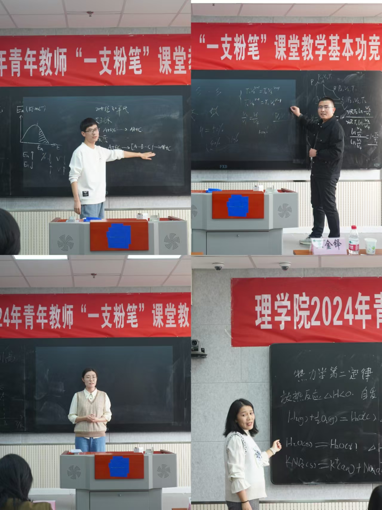 王金铎副处长结合习近平总书记的讲话精神和师德师风建设,以及我校在近年来在各级创新课比赛备赛情况,对青年教师在师德和教学技能方面提出了明确要求和期望,并希望各位老师赛出水平、赛出风采。参赛的17名青年教师“一支粉笔”上讲台,在规定时间内,以板书为主、教具为辅,以扎实的知识功底、过硬的教学能力和良好的精神风貌,巧妙地植入课程思政,呈现精彩生动的专业课程。他们从不同的角进行内容创新,例如用花青素在不同pH条件下的颜色变化,阐释化学平衡移动原理;或用偏振片的角度旋转,揭示马吕斯定律;或从绿豆汤呈现不同的颜色这一生活事例中,巧妙地引入酚氧化的概念。经过激烈角逐,林璐老师获一等奖、赵万鹏等3位老师获二等奖,武晓霞等5位老师获三等奖。