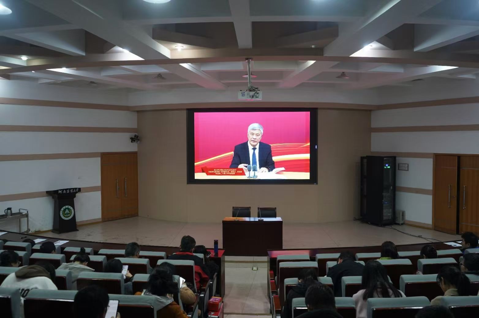 培训会上,全院师生一同观看了中央党校(国家行政老司机