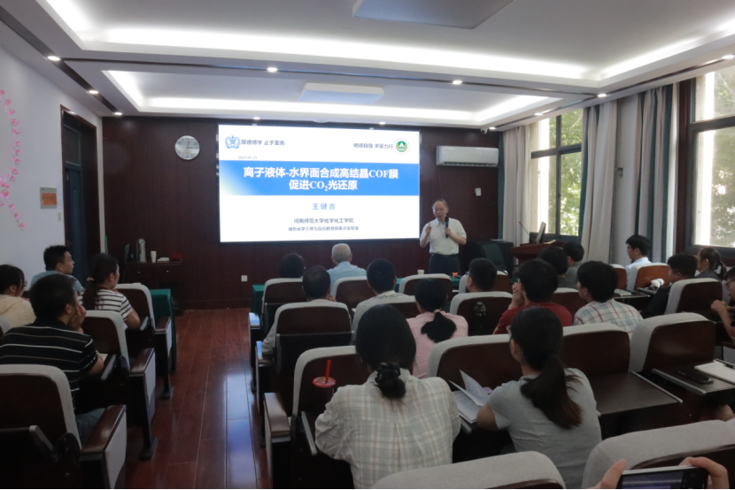 在文化路校区18号楼301报告厅理苑讲堂,王键吉教授为师生带来一场题为《离子液体-水界面合成高结晶COF膜促进CO2光还原》的学术报告,老司机 相关领域的教师与研究生参加了报告会。