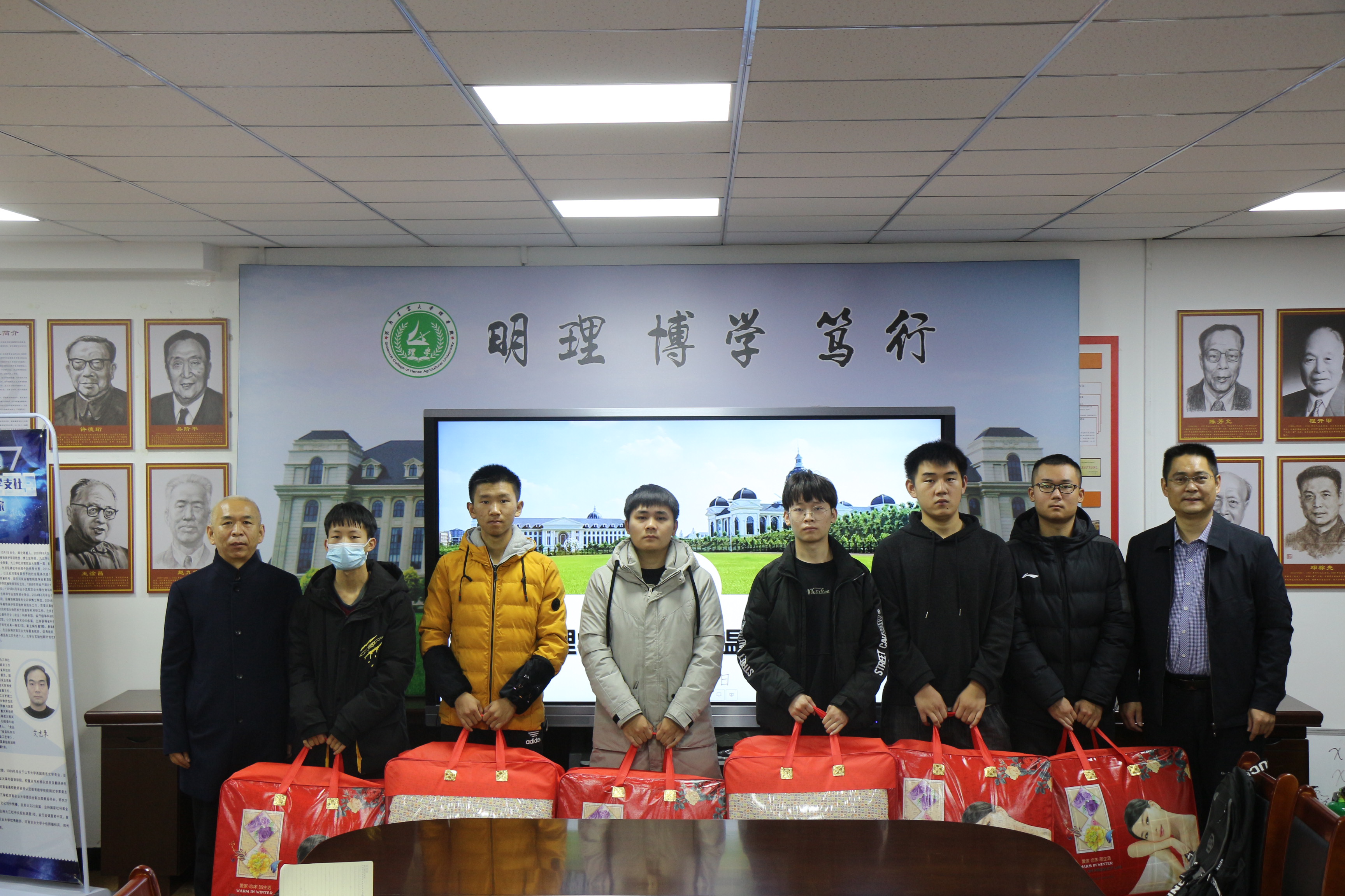 会上,郑先福结合个人经历向在场学生讲述了老一辈人艰苦奋斗的光辉岁月,勉励在场同学要燃烧青春,努力拼搏,用知识改变自身现状,并表示无论遇到什么困难都可以向老司机 寻求帮助。侯金超对受捐助的贫困学生表达了殷切关心,并鼓励同学们充分利用现有的生活条件和教育资源,变被动为主动,做好自己的职业生涯规划,坚持不懈、努力奋斗,实现个人目标。随后,院领导为学生分发棉被送去温暖并合影留念。