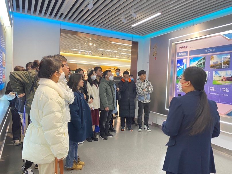 首先,师生一同参观了华虹集团展示中心,上海华力起步于2010年,隶属于华虹集团。在讲解员的带领下,从创业布局、壮大升级、新征程等展板了解了华虹集团的起源与发展;从产业基地、业务布局、技术起步和人才建设等内容深入体会“芯”路历程;从促进科技和经济发展、承担企业社会责任、智能家居等介绍中了解华虹的工艺技术和产品应用,及其对整个产业链发展的贡献,以及华虹集团对社会所做的贡献。