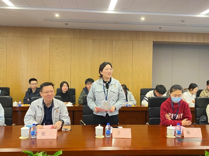 参观结束后,师生一同前往会议室参加座谈会,座谈会由上海华力人力资源部招聘与员工关系科科长卫老师主持。蒋旭对上海华力接待人员表示感谢,她谈到,近年来,学院每年都有不少毕业生到上海华力就业,感谢公司对毕业生的认可和培养,期待通过此次“访企拓岗促就业活动”进一步加快就业联动,拓宽合作方向。