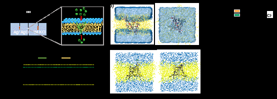 图4.(a)膜片钳实验示意图;(b)分子动力学模拟示意图;(c)HCT116和RKO两种癌细胞的生存率