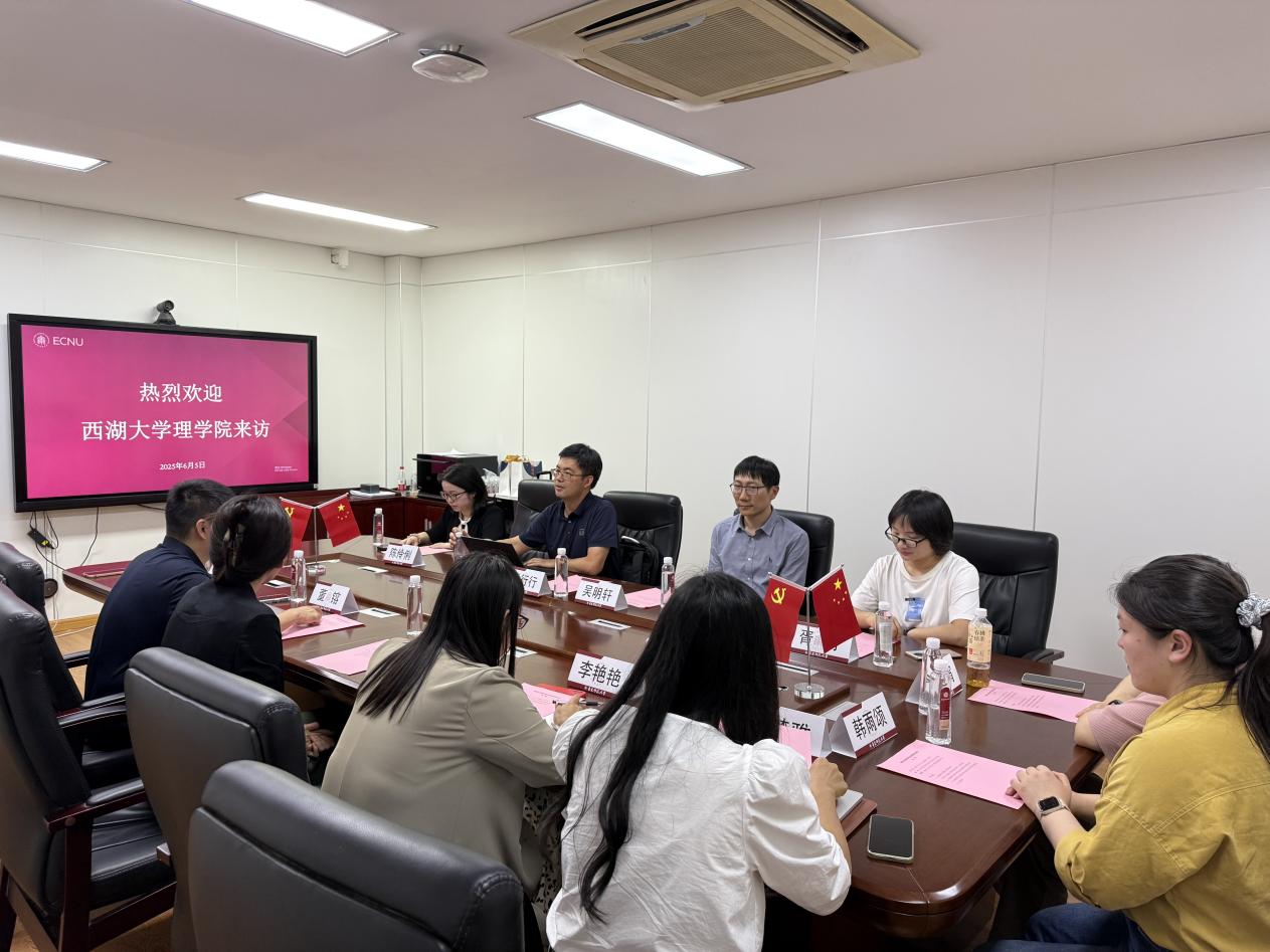 2025年6月5日下午,西湖大学理学院院长助理、党委委员兰行行一行来我院开展交流调研,学院党委副书记董镕、副院长万晶晶及相关教师代表参加座谈。双方围绕拔尖创新人才培养、学科建设、学生管理及博士后招聘等议题展开深入探讨,共谋合作发展。