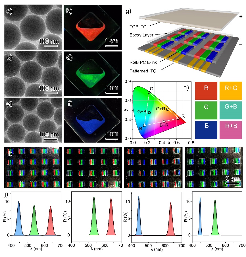 图3.基于光子晶体电子墨水的像素阵列和彩色显示面板。图片来源:Nat. Commun.