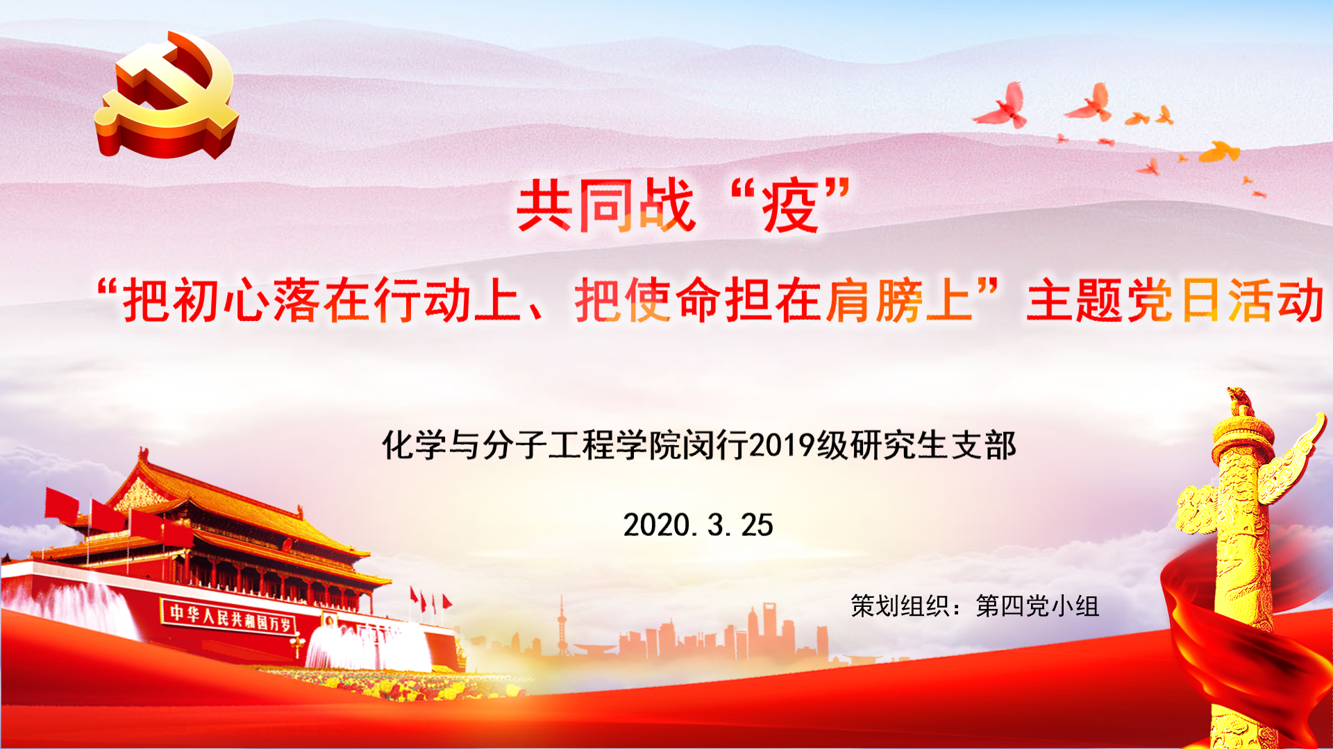 其他支部也分别通过线上平台学习习近平总书记重要讲话、关于疫情的科学知识、中央的一系列文件,学习在抗疫中涌现出来的先进事迹和模范人物,,在这场战“疫”中,党员干部冲锋在前,这些都给党员同志们上了一堂生动的党课各支部线上讨论分享如何发挥党员的先锋模范作用,表达了对中国制度优越性的自豪和作为中国人的骄傲,同时表达了对抗疫一线的工作人员、社会各处的志愿者们、在后方维持稳定、保证物资供应的公务人员及抗疫中涌现出的先锋企业及先进人物的敬意。