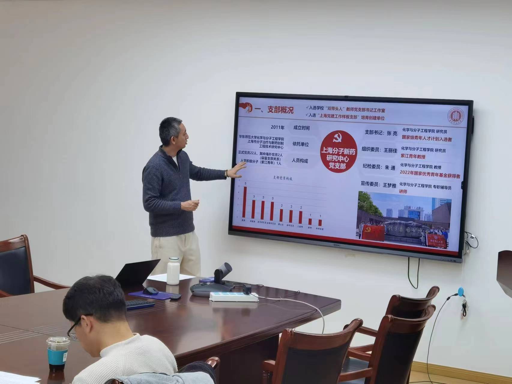民主评议党员是党的组织生活的重要内容,结合贯彻落实2024年全国教育工作会议精神和新学期工作部署,根据学校党委组织部、学院党委统一部署和工作要求,2024年3月20日,上海分子新药研究中心党支部在理科大楼B1602会议室召开2023年度组织生活会和民主评议党员会议,大会由支部书记张亮主持。