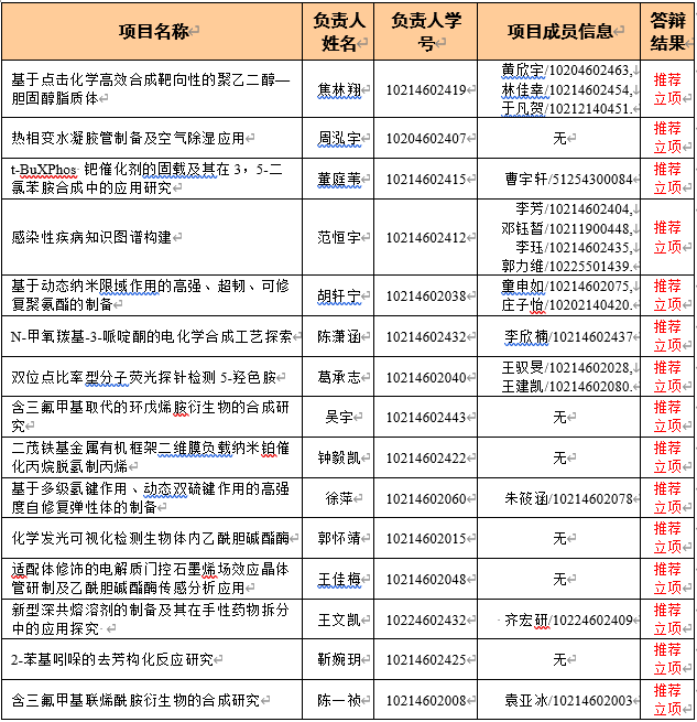 化学院近年来坚持落实学校“卓越育人”的工作方案,以卓越学术建设卓越课程,实现拔尖创新人才的培养。绝大部分参加本年度申报的学生已修过科研训练课程,有的学生已先期进入指导教师课题组,具备了一定的项目基础。大家纷纷对导师在科研上的关心指导表示感谢,并认为在此过程中收获颇多,了解科研中的严谨求实、刻苦坚持、团结合作,永不放弃的精神。