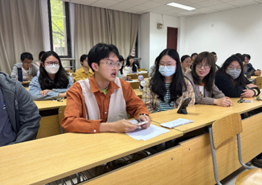 沈珺同志表示在看到科学家精神这个内涵时,第一反应变想到的是学校的校训“求实创造,为人师表”。她认为“为人师表”从某种角度可以理解为“育人精神”,而作为师范类院校,同学们都可能会去当老师、去教书育人。“希望我们以后都可以秉持学校的校训,贯彻“求实创造,为人师表”,秉持科学家精神。”最终,她表达了对同学们的殷殷期盼。