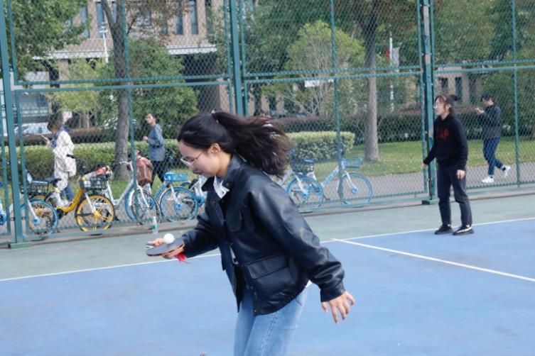 在“乒乓球接力赛”中,每队六名队员采用迎面接力形式,单手用乒乓球拍运送乒乓球,依次完成接力,紫队再次拔得头筹。
