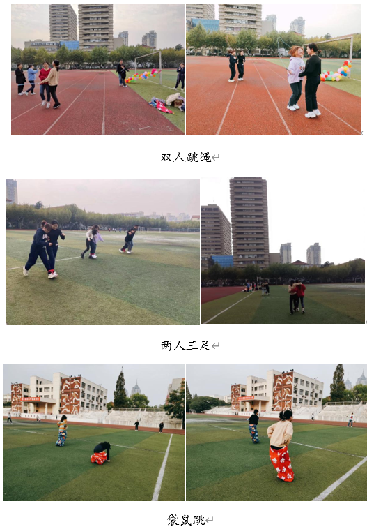 本次趣味运动共设四个项目,分别是“双人跳绳”“两人三足”“袋鼠跳”与“踩气球”,每个项目都旨在考验参与者的运动协调能力和团队合作能力。比赛进行得紧张激烈,大家尽情地享受着运动带来的乐趣,一旁围观的同学也时不时为参赛同学的精彩表现而欢呼喝彩。自始至终,整个运动场充满了欢声笑语,洋溢着青春的朝气。